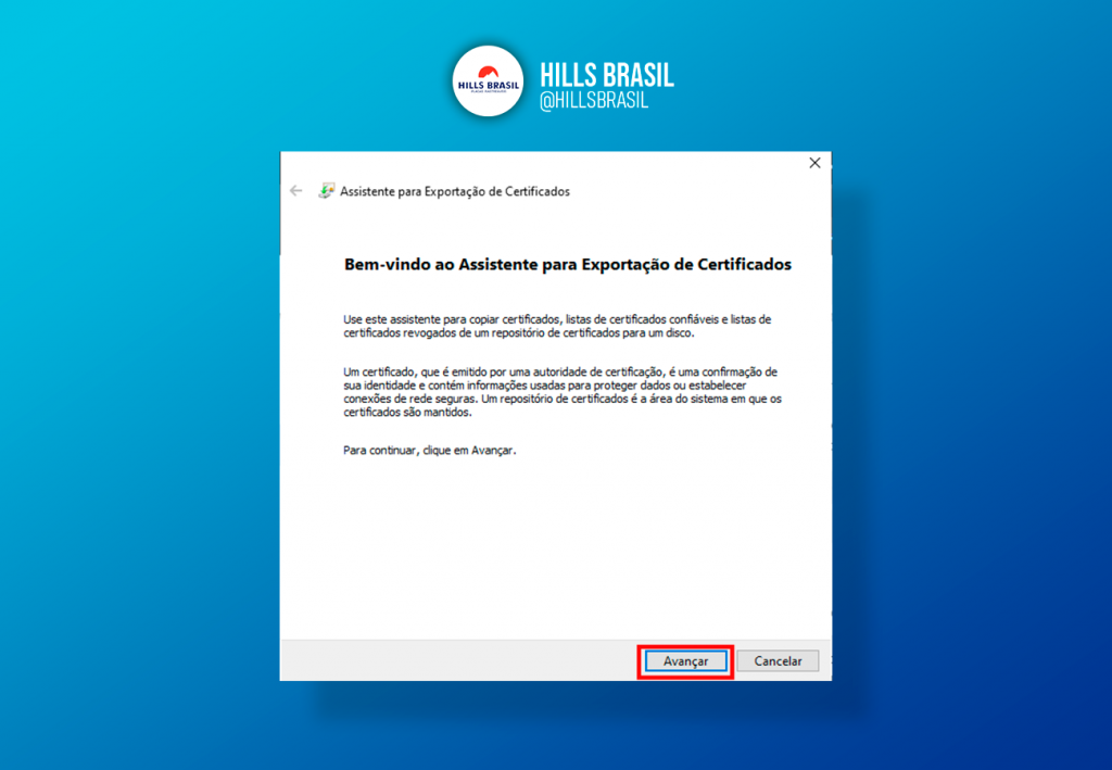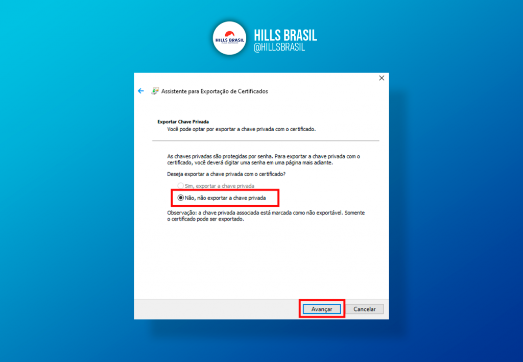 Escolha a opção “Não, Não exportar a chave privada” como na imagem e clique em avançar!